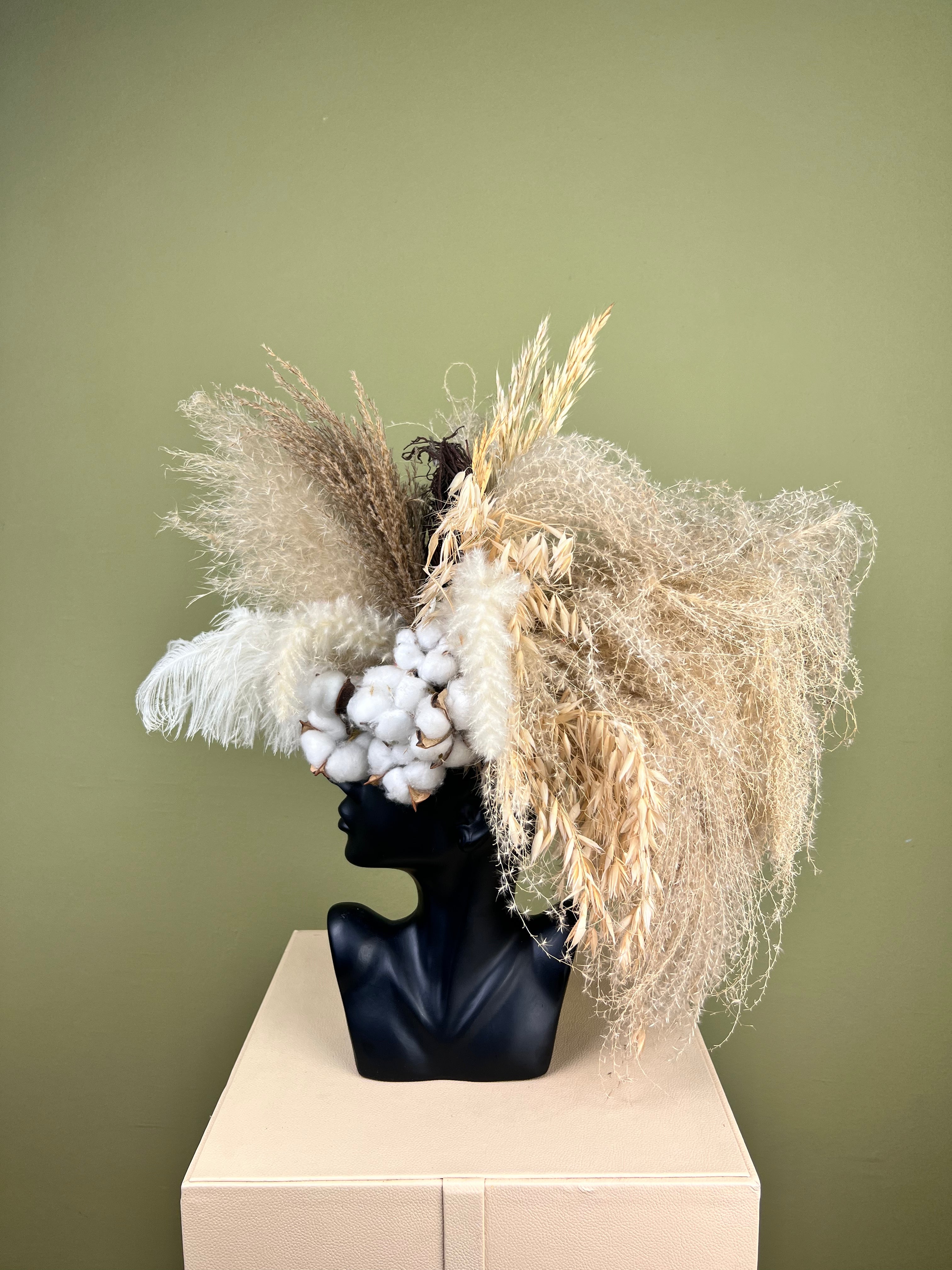 Discover Delilah - a blend of delicate and dry flowers that exude softness and elegance. With its distinctive and enduring design, this singular piece will add a touch of refinement and beauty to any space. Bring Delilah into your home with this exclusive creation,