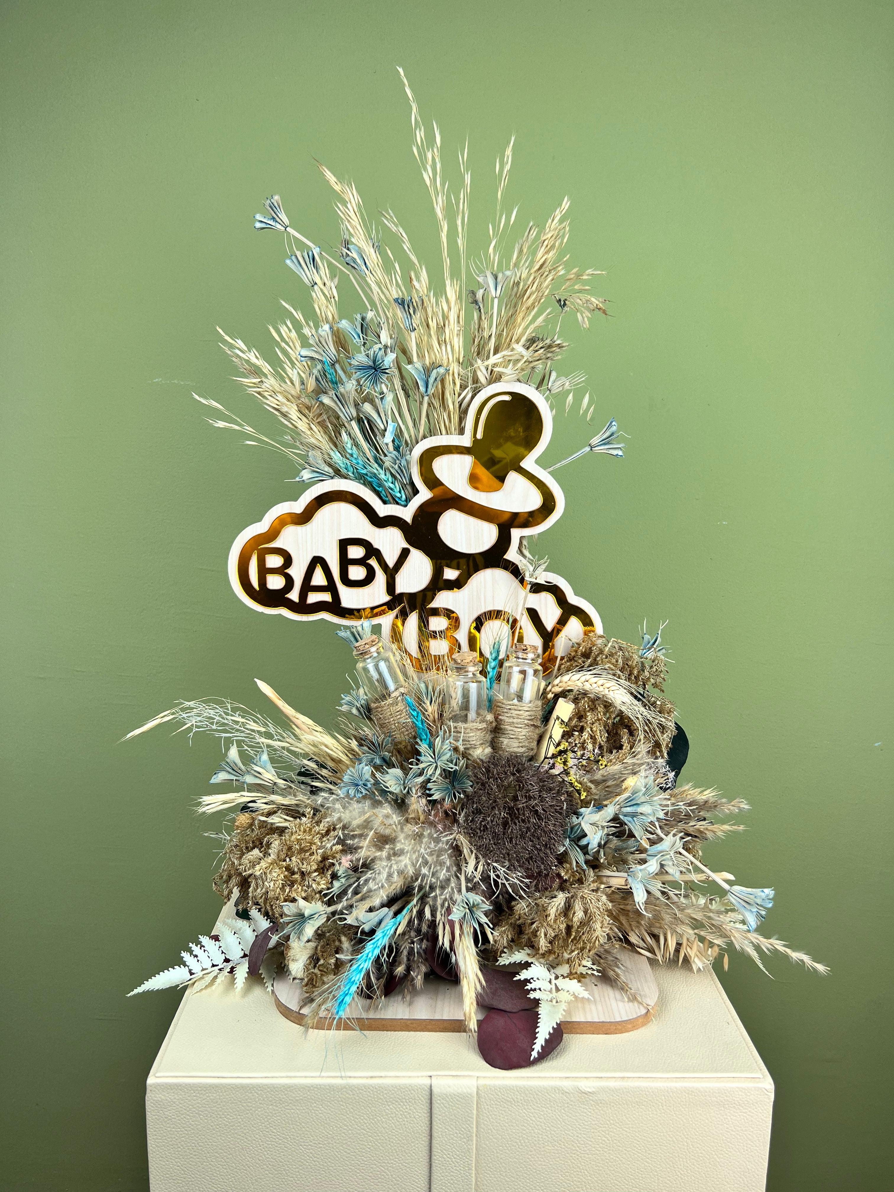 A little bundle of joy deserves a special welcome. This dry arrangement is a unique and lasting way to celebrate welcoming new born , specially that you can add a gift of money to the arrangement