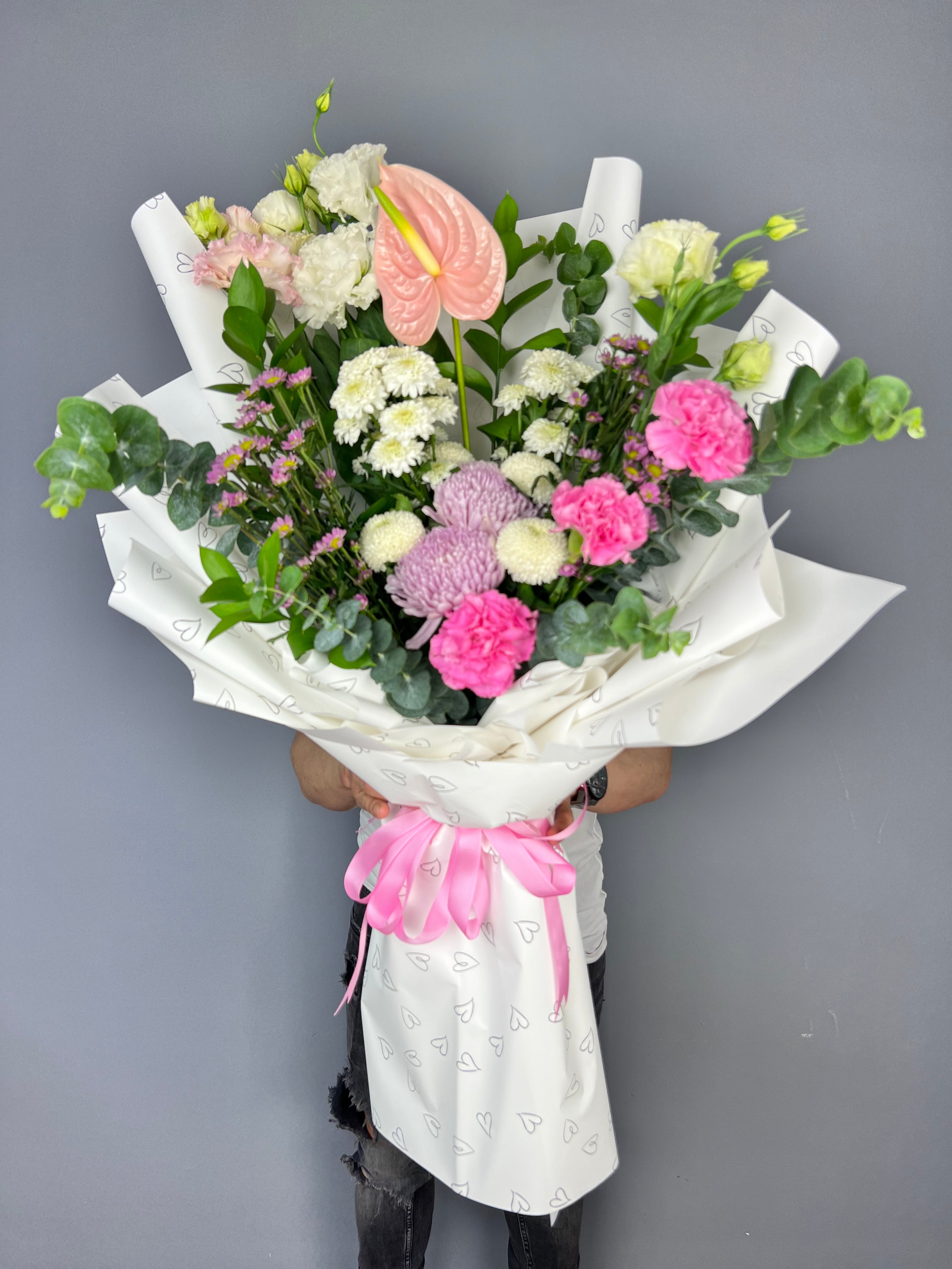This simple yet elegant and huge arrangement of Fresh flowers is perfect for any Occasion.