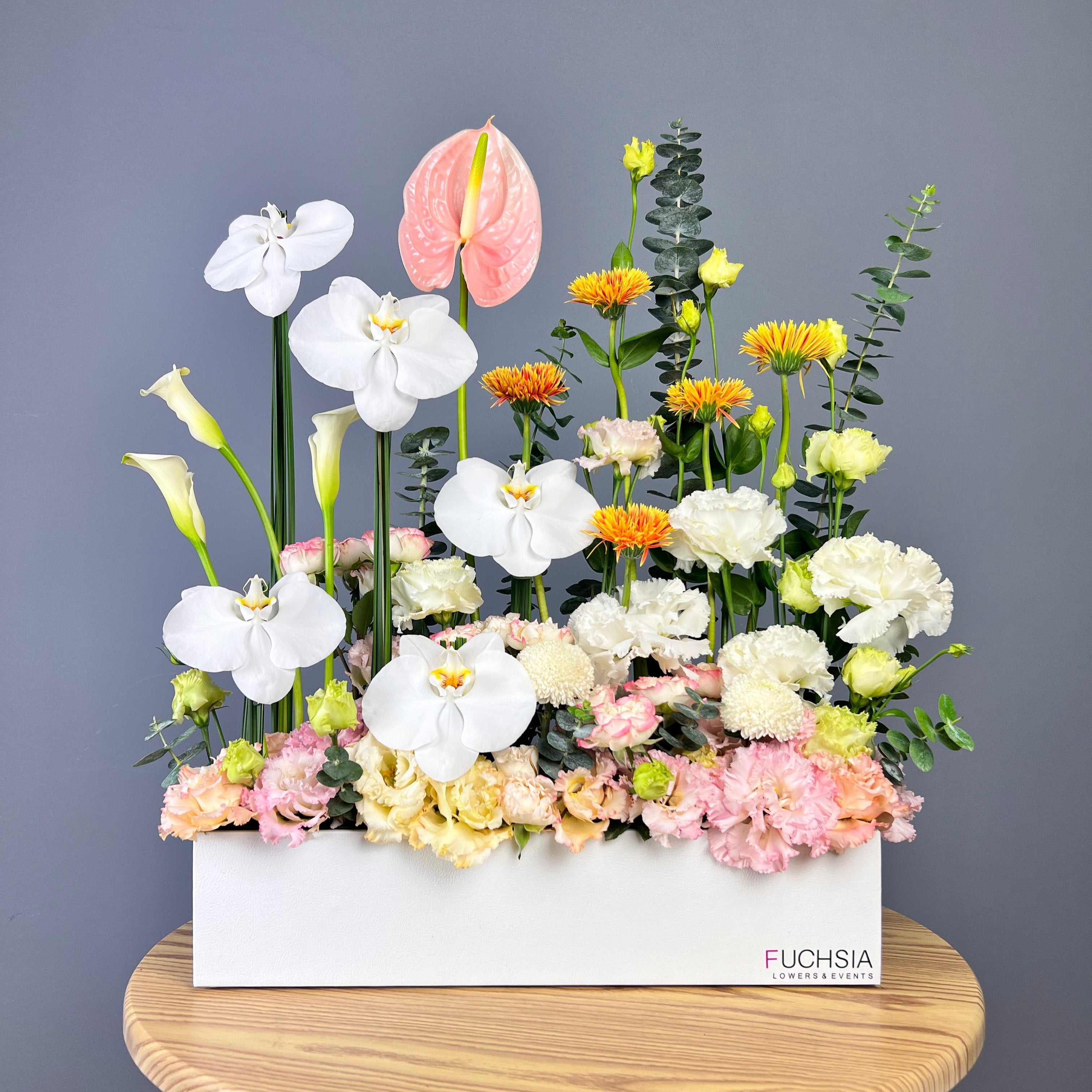 This simple yet elegant and huge arrangement of Fresh flowers is perfect for any Occasion.